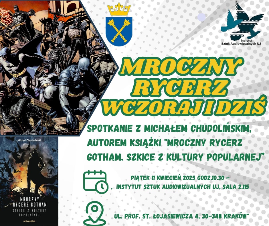 W czwartek 11 kwietnia 2025 r. w Instytucie Sztuk Audiowizualnych UJ odbędzie się spotkanie z Michałem Chudolińskim – autorem książki Mroczny rycerz Gotham.