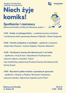 W najbliższą sobotę (20.11.2021 r.) o godzinie 11:00, na terenie warszawskiej Elektrowni Powiśle (Dobra 42), rozpocznie się kolejna edycja wydarzenia Niech żyje komiks!.