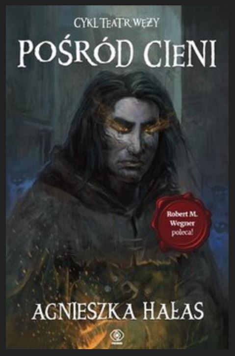 „Pośród cieni” to drugi tom trylogii Teatru węży autorstwa Agnieszki Hałas. Tym razem Brune Keare zmierzy się z przedstawicielami własnej profesji, zarówno fałszywymi, jak i dopiero odkrywającymi swój talent, a także w pełni ukształtowanymi magami. Wplącze się przypadkowo w konflikt między organizacjami przestępczymi, co spowoduje, że pętla założona przez strzegących równowagi Ekwilibrium srebrnych magów zacznie się niebezpiecznie zaciskać. A przede wszystkim Krzyczący w Ciemności – czy mu się to podoba, czy też nie – stawi w końcu czoła własnej przeszłości.
