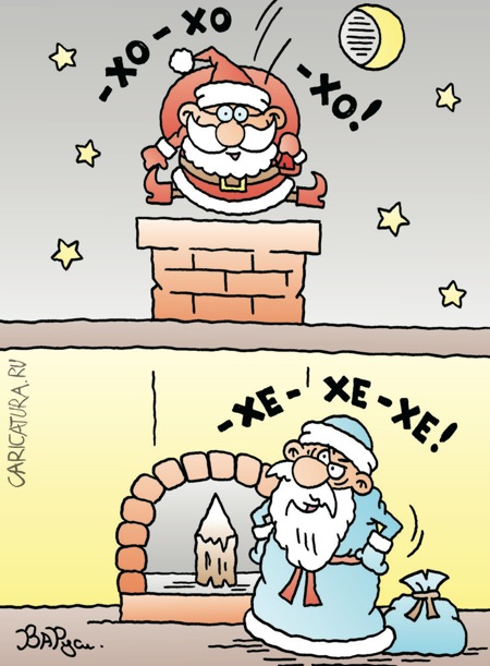 Jako ilustrację wykorzystaliśmy, mającą ścisły związek i z opowiadaniem, i z jutrzejszym konkursem, karykaturę Rusłana Walitowa „Moroz vs Santa” ze świetnego serwisu caricatura.ru