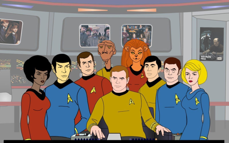 Również jednak mostek Enterprise w TAS wygląda znacznie lepiej niż w swoim TOS-owym wydaniu, dzięki magicznej mocy animacji. Tenże TOSowo-TASowy mostek cieszył się zresztą na tyle dużą popularnością, że Arthur C. Clarke, jak wiemy – zaprzyjaźniony z Roddenberrym – wykorzystał go w swojej powieści „Spotkanie z Ramą” (mamy tam zawodowego kosmonautę, komandora Nortona, który jest fanem Treka i urządził sobie mostek, na statku nie latającym aż tak daleko, tylko polującym na asteroidy, o ile dobrze pamiętam, jako kopię tego trekowego.)