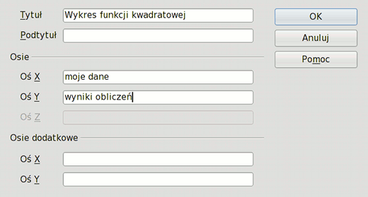 Wykres w arkuszu kalkulacyjnym OpenOffice.Okno opisu osi.