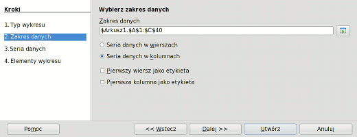 Okno to będzie niezbędne w sytuacji, gdy mamy wiele kolumn z danymi i trzeba ręcznie wybrać, z których mamy wykonać wykres. Wreszcie, jest to bardzo częsty przypadek, trzeba wybrać tylko fragment zapisanych danych do wykresu, bo reszta jest nieinteresująca.