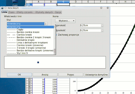 Wykres w arkuszu kalkulacyjnym OpenOffice.Edycja stylu linii.